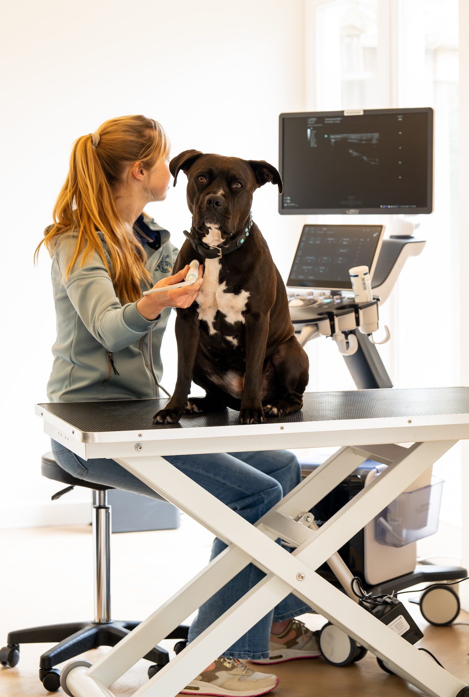 Dierenartsen en dierenfysiotherapeuten. Ervaring met echografie is geen vereiste.